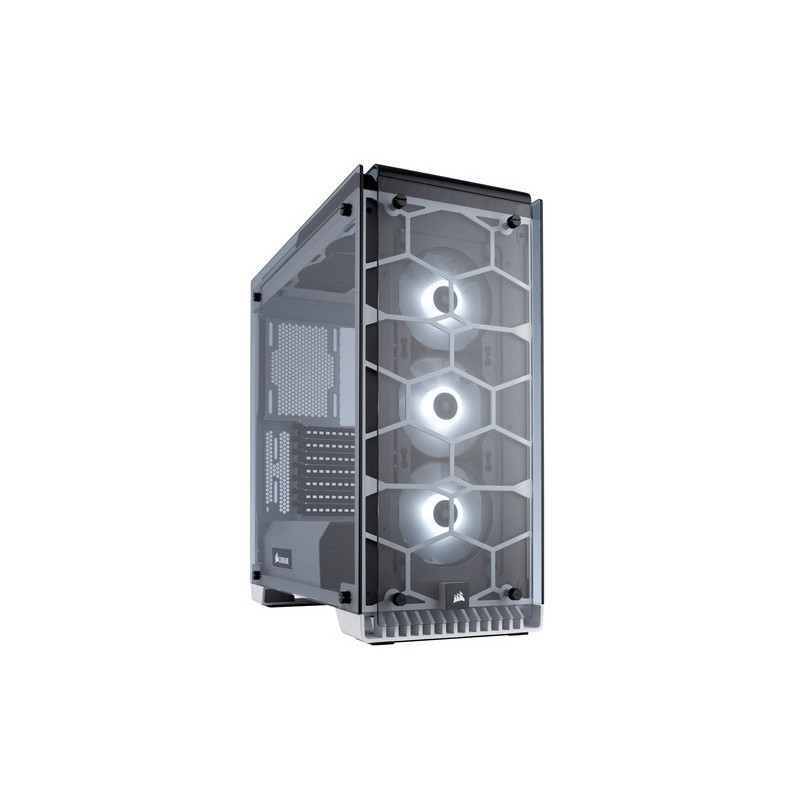 Corsair 570X, Crystal. Factor de forma: Midi-Tower, Tipo: PC, Materiales: Acero. Ubicación de fuente de alimentación: Fondo, Factores de forma de la fuente de alimentación compatibles: ATX. Ventiladores frontales instalados: 3x 120 mm, Diámetro de ventiladores frontales soportados: 120,140 mm, Diámetro de ventiladores traseros soportados: 120 mm. Tamaños de disco duro soportados: 2.5,3.5". Ancho: 234 mm, Profundidad: 480 mm, Altura: 512 mm