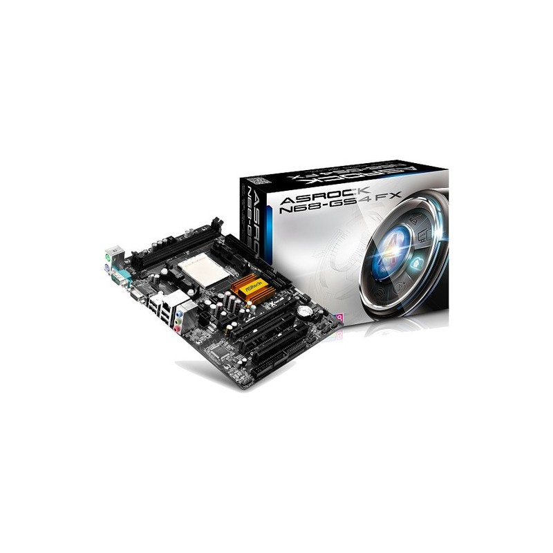 Asrock N68-GS4 FX. tipos de memoria compatibles: DDR3-SDRAM, Tipo de ranuras de memoria: DIMM, Canales de memoria: Dual. Familia de procesador: AMD, Socket de procesador: Socket AM3+, Procesador FSB, soporte: 1000 MHz. Interfaces de unidad de disco duro soportadas: Serial ATA II. Controlador LAN: A