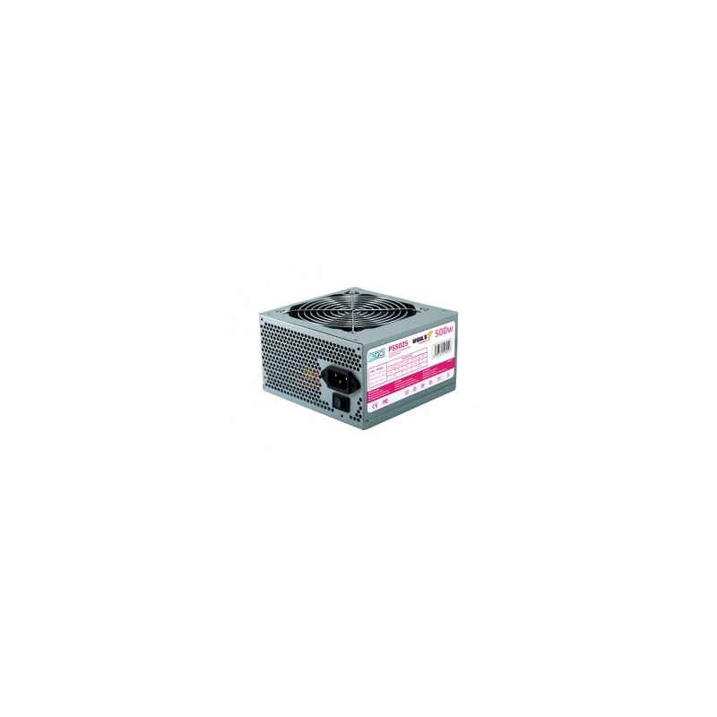 3GO PS502S. Potencia nominal: 500W. Diámetro de ventilador: 12 cm, Ubicación de ventilador: Lado, Tipo de enfriamiento: Activo. Alimentador de energía para tarjeta madre: 20+4 pin ATX. Factor de forma: ATX, Utilizar con: PC. Color del producto: Acero inoxidable