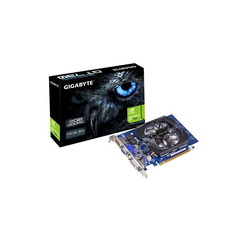 Gigabyte GV-N730D5-2GI. Familia de procesadores de gráficos: NVIDIA, Procesador gráfico: GeForce GT 730, Máxima resolución: 4096 x 2160 Pixeles. Gráficos discretos memoria del adaptador: 2 GB, Tipo de memoria de adaptador gráfico: GDDR5-SDRAM, Ancho de datos: 64 bit. Tipo de interfaz: PCI Express 2.0. Versión DirectX: 11.2, Versión OpenGL: 4.4. Tipo de enfriamiento: Activo, Factor de forma: ATX