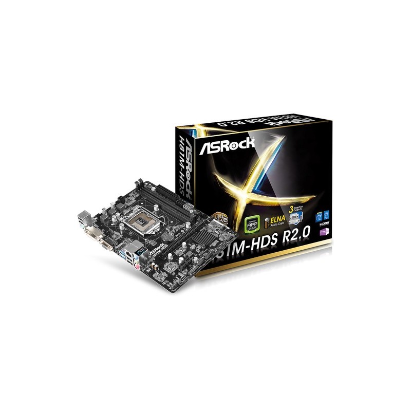 Asrock H81M-HDS R2.0. tipos de memoria compatibles: DDR3-SDRAM, DDR3L-SDRAM, Tipo de ranuras de memoria: DIMM, Canales de memoria: Dual. Familia de procesador: Intel, Procesador compatible: Core i5, Core i7, Core i3, Socket de procesador: Socket H3 (LGA 1150). Controlador LAN: Realtek RTL8111GR, Tipo de interfaz ethernet: Rápido, Gigabit. Componente para: PC, Familia de componentes de tarjeta madre: Intel, Circuito integrado de tarjeta madre: Intel H81. Máxima resolución: 1920 x 1200 Pixeles