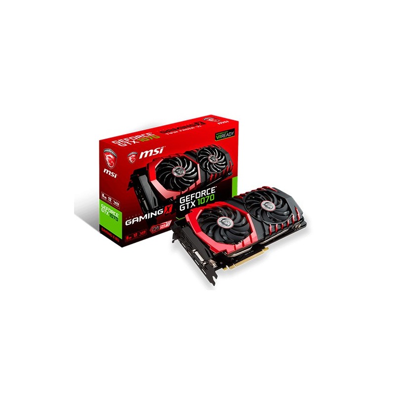MSI V330-001R. Familia de procesadores de gráficos: NVIDIA, Procesador gráfico: GeForce GTX 1070, Máxima resolución: 7680 x 4320 Pixeles. Gráficos discretos memoria del adaptador: 8 GB, Tipo de memoria de adaptador gráfico: GDDR5-SDRAM, Ancho de datos: 256 bit. Tipo de interfaz: PCI Express x16 3.0, Versión HDMI: 2.0, Versión de DisplayPort: 1.4. Versión DirectX: 12.0, Versión OpenGL: 4.5. Tipo de enfriamiento: Activo, Color del producto: Negro, Rojo