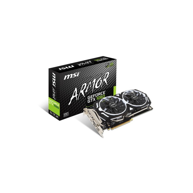 MSI GeForce GTX 1060 ARMOR 3G OCV1. Familia de procesadores de gráficos: NVIDIA, Procesador gráfico: GeForce GTX 1060, Máxima resolución: 7680 x 4320 Pixeles. Gráficos discretos memoria del adaptador: 3 GB, Tipo de memoria de adaptador gráfico: GDDR5, Ancho de datos: 192 bit. Tipo de interfaz