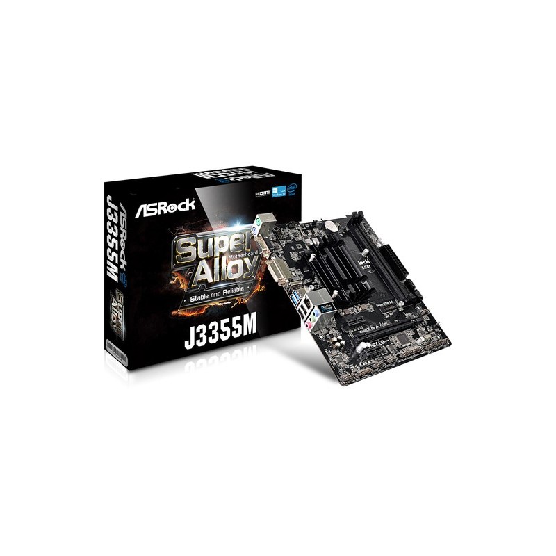 Asrock J3355M. tipos de memoria compatibles: DDR3-SDRAM, DDR3L-SDRAM, Tipo de ranuras de memoria: DIMM, Canales de memoria: Dual. Familia de procesador: Intel, Socket de procesador: NA (CPU integrada), Modelo del procesador: J3355. Interfaces de unidad de disco duro soportadas: Serial ATA III. Controlador LAN: Realtek RTL8111E, Tipo de interfaz ethernet: Gigabit Ethernet. Componente para: PC, Familia de componentes de tarjeta madre: Intel, Tarjeta madre, factor de forma: Micro ATX