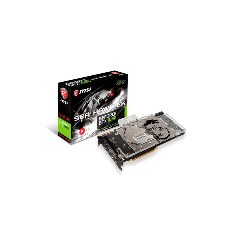 MSI GeForce GTX 1080 SEA HAWK EK X. Familia de procesadores de gráficos: NVIDIA, Procesador gráfico: GeForce GTX 1080, Máxima resolución: 7680 x 4320 Pixeles. Gráficos discretos memoria del adaptador: 8 GB, Tipo de memoria de adaptador gráfico: GDDR5X, Ancho de datos: 256 bit. Tipo de interfa