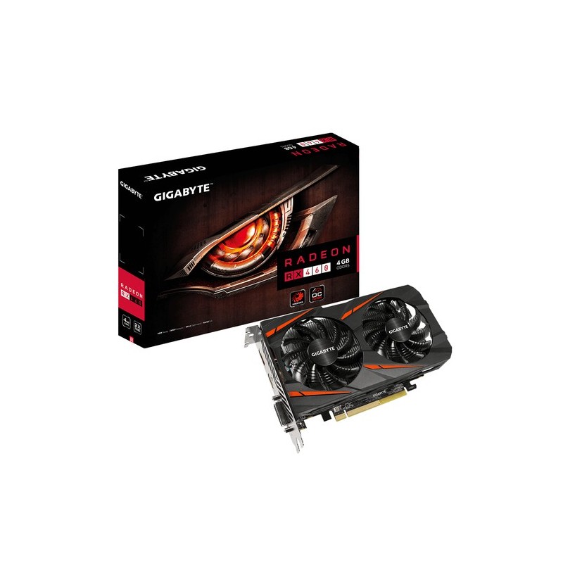 Gigabyte GV-RX460WF2OC-4GD. Familia de procesadores de gráficos: AMD, Procesador gráfico: Radeon RX 460, Máxima resolución: 7680 x 4320 Pixeles. Gráficos discretos memoria del adaptador: 4 GB, Tipo de memoria de adaptador gráfico: GDDR5, Ancho de datos: 128 bit. Versión HDMI: 2.0b, Versión