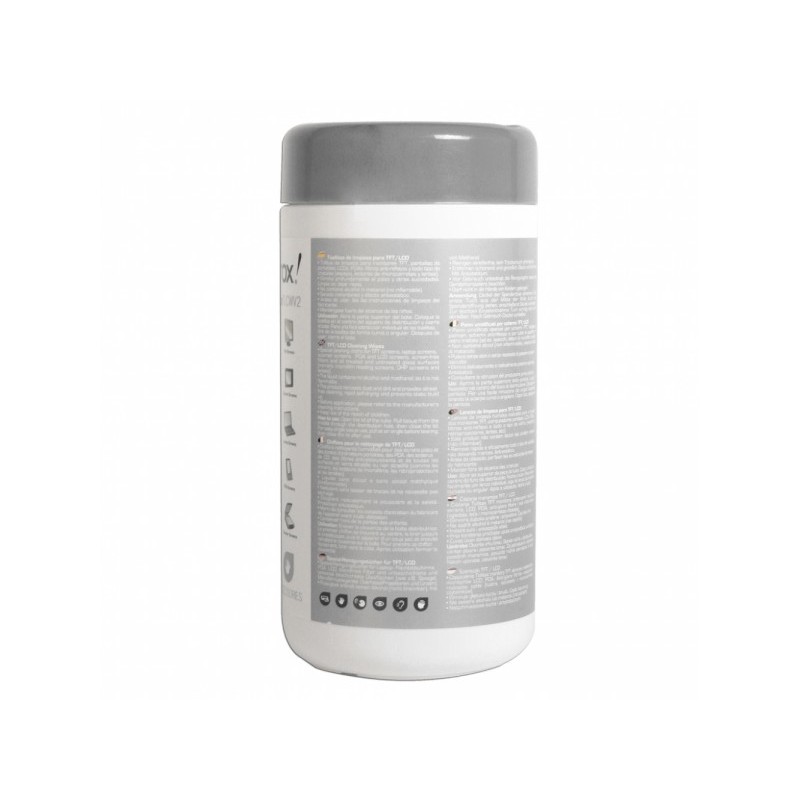 - Elimina profundamente el polvo y la suciedad. - Limpia sin dejar rayas. - Secado instantáneo. - Efecto antiestático. - No contienen alcohol (líquido no inflamable). - Libre de metanol. - Envase de 100 unidades.