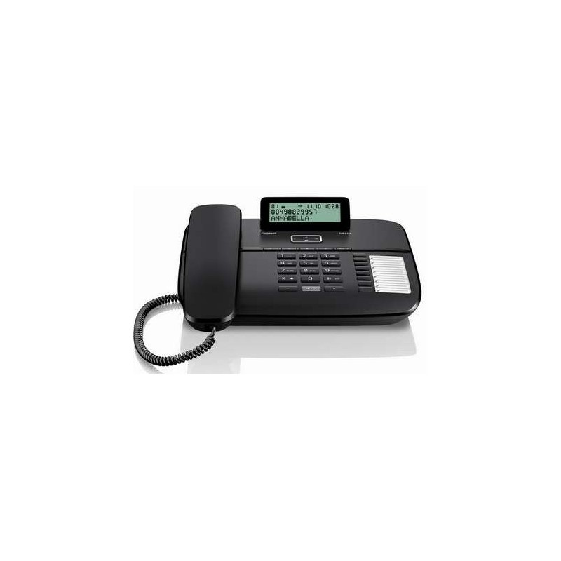Gigaset DA710. Tipo: DECT. Color del producto: Negro, Tipo de montaje: Wall/Desk. Capacidad de lista de direcciones: 100 entradas. Número de colores de la pantalla: Monocromo, Color de luz de fondo: Verde. Ancho: 22,1 cm, Profundidad: 20,2 cm, Altura: 6,2 cm