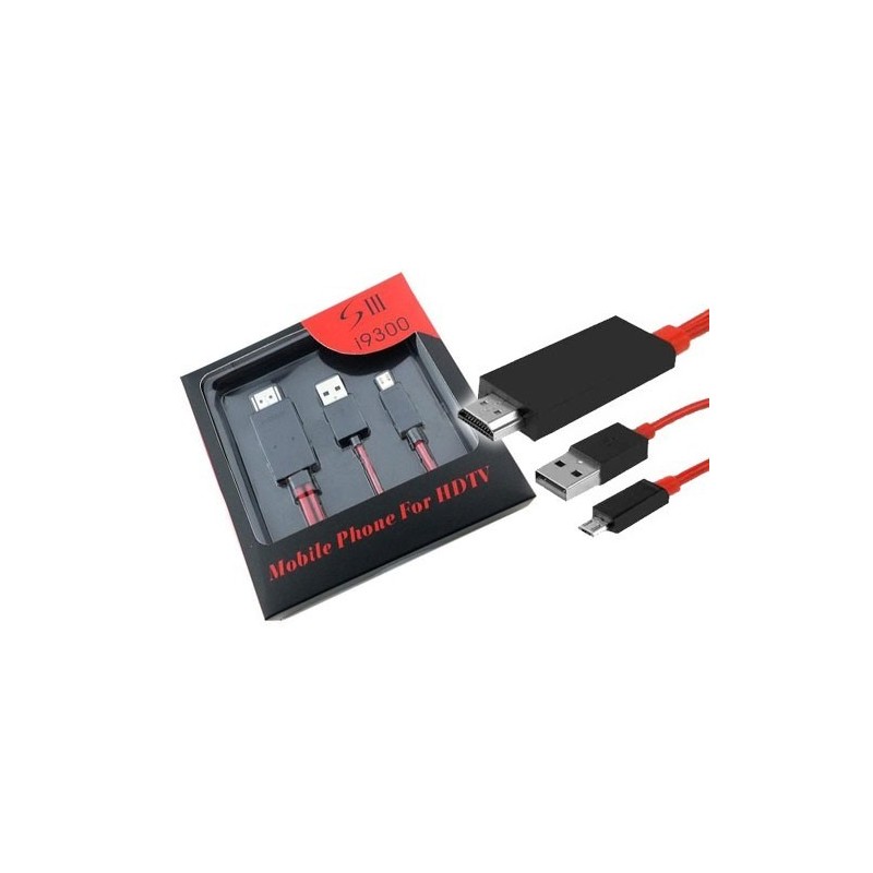 Adaptador 3en1 MHL (11 pines) a HDMI Galaxy S3, S4, S5, Note 2, Note 3, etc. Disfrute todo el contenido multimedia de su telefono, peliculas hd y full hd, juegos, internet, etc. No necesitas ningún cable adicional ya que este adapatador incluye cable de carga usb y cable HDMI.