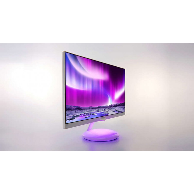 AmbiGlow agrega una nueva dimensión a tu experiencia de visualización. La tecnología innovadora de AmbiGlow amplía la experiencia creando un halo de luz en la base y alrededor de la misma. Su rápido procesador analiza el contenido de la imagen entrante y adapta continuamente el color y el brillo de la luz emitida para coincidir con la imagen. Además, la base iluminada AmbiGlow Plus recorre distintos colores y permite al usuario seleccionar manualmente el color o el tiempo de la luz para una iluminación que se adapte a la situación. El color, la intensidad y la acción van más allá de la pantalla y ofrecerte una experiencia de visualización más viva, emocionante y envolvente.