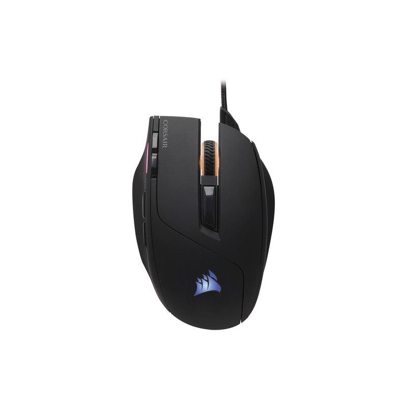 Corsair CH-9303011-EU. Interfaz del dispositivo: USB, Utilizar con: Juego, Tecnología de detección de movimientos: Óptico. Factor de forma: mano derecha, Color del producto: Negro. Longitud de cable: 1,8 m. Fuente de energía: Cable. Ancho: 12,4 cm, Profundidad: 8 cm, Altura: 3,8 cm