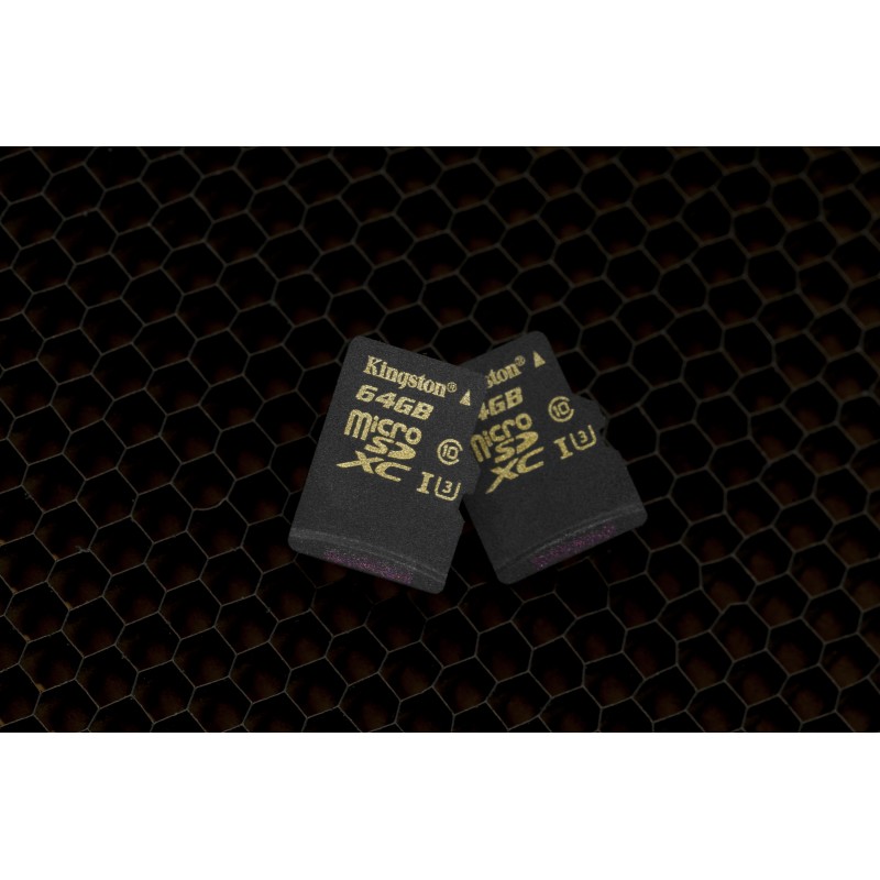 Si desea una tarjeta de gran rendimiento para maximizar las grabaciones de su cámara GoPro®, Ultra HD o la de su drone, ya no tiene que buscar más. Las tarjetas microSD Gold UHS-I Clase 3 (U3) de Kingston le permiten grabar vídeos a 30 cuadros por segundo en Ultra HD ("4K",2160p) y a 120 cuadros por segundo en HD ("2K", 1080p). Disfrute de cargas a PCs y de ediciones más rápidas de sus grabaciones, especialmente al utilizar lectores USB 3.0 de tarjetas como el MLG4 Media Reader de Kingston. El aumento en la velocidad de escritura le permite grabar continuamente en el modo de ráfaga, y la más alta velocidad en el modo sostenido garantiza la integridad de sus vídeos al reducir el entrecortado.