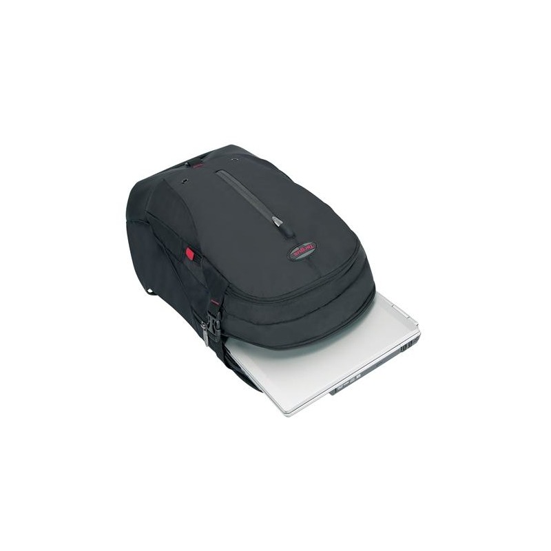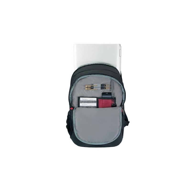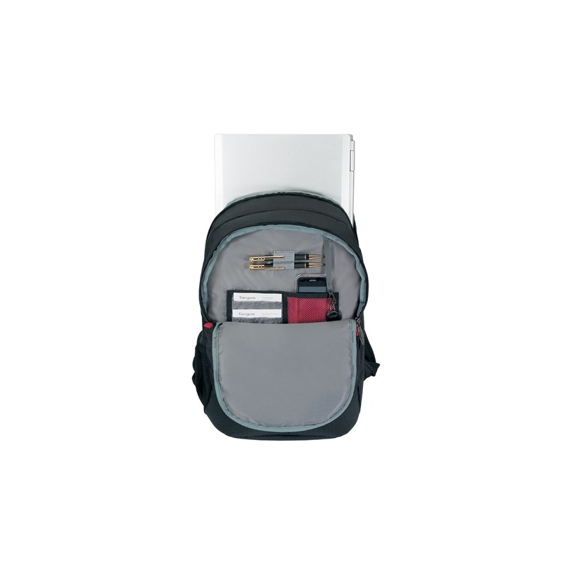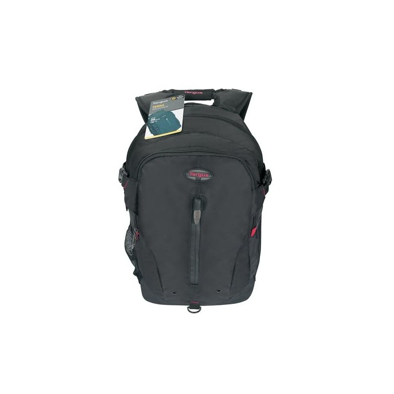 La nueva mochila Terra 16” de Targus se ha diseñado para transportar y proteger portátiles de hasta 16”, con compartimentos espaciosos y varios bolsillos para transportar objetos personales. Un gran compartimento, colocado delante del apartado acolchado para el portátil, resulta suficientemente grande para guardar una carpeta y libros, y una sección independiente de organización contiene presillas para bolígrafos y un hueco para tarjetas de visita. Los bolsillos exteriores incluyen una útil cremallera en el bolsillo delantero, un compartimento MP3 con puerto para auriculares y un bolsillo de malla en cada lado para llevar una botella de agua u objetos de pequeño tamaño.