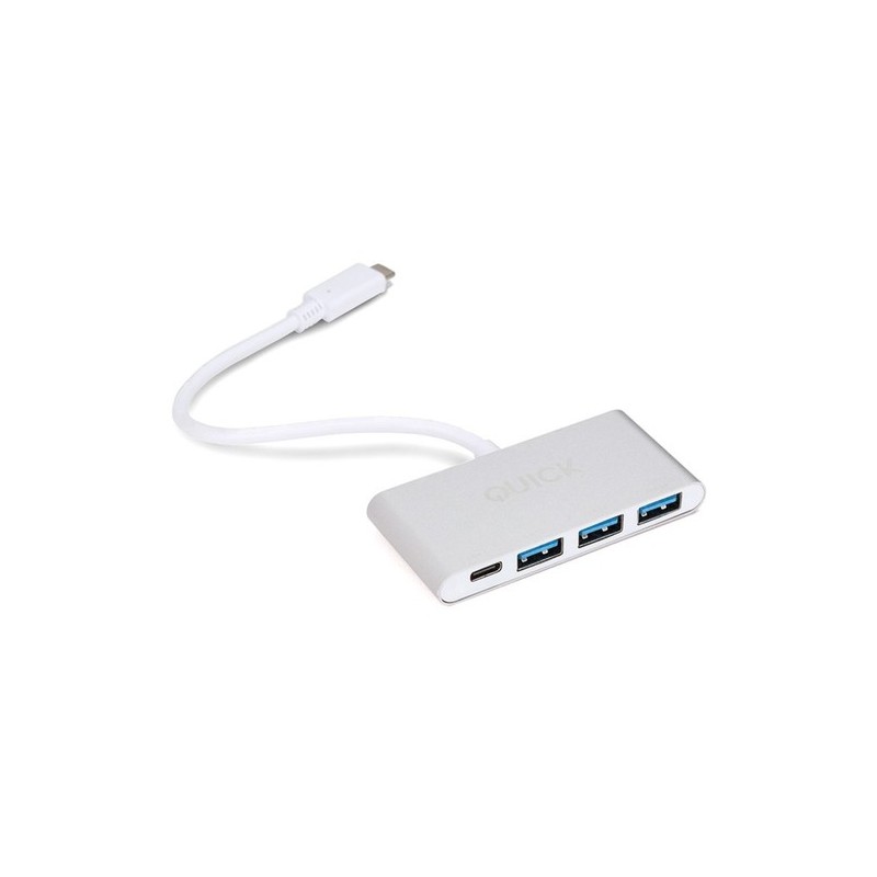 Quick Media QMTCHUB. Interfaz de host: USB 3.0 (3.1 Gen 1) Type-?, Interfaces de concentradores: USB 3.0 (3.1 Gen 1) Type-A, USB 3.0 (3.1 Gen 1) Type-?, Longitud de cable: 0,2 m. Velocidad de transferencia de datos: 5000 Mbit/s, Certificación: CE, RoHs, FCC. Color del producto: Color blanco, Materiales: Aluminio. Sistema operativo Windows soportado: Windows 7 Enterprise, Windows 7 Enterprise x64, Windows 7 Home Basic, Windows 7 Home Basic x64, Wind. Ancho: 7,8 cm, Profundidad: 3,7 cm, Altura: 1 cm