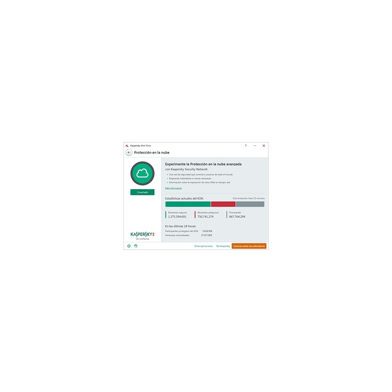 Si el software de seguridad es difícil de ejecutar y requiere una gestión muy compleja, puedes perder mucho tiempo y crear el potencial para las brechas de seguridad. Con una cuenta gratis de My Kaspersky, te permitimos gestionar la seguridad desde cualquier lugar mediante el cual puedas acceder a la Web. Puedes comprobar el estado de la seguridad y las licencias de tu PC, y ajustar funciones de configuración de seguridad claves, además de acceder a ofertas especiales y descargar productos de Kaspersky Lab de forma gratuita. My Kaspersky también te proporciona acceso fácil a soporte técnico.